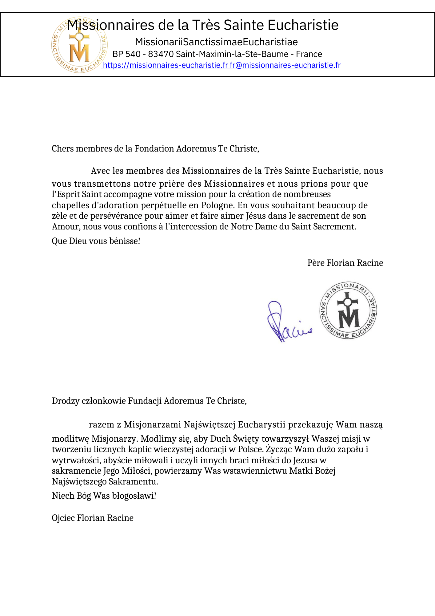 Błogosławieństwo Misjonarzy Najświętszej Eucharystii